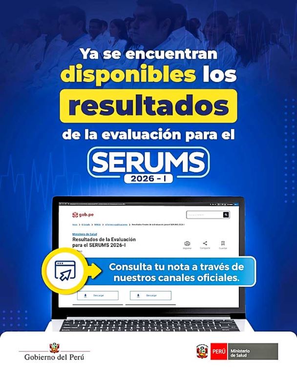 Los postulantes pueden consultar su puntaje a través de la página oficial del Minsa, siendo este parte de los requisitos para inscribirse a la etapa de adjudicación de plazas Serums. Para conocer los resultados ingresar al siguiente enlace.