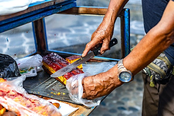 Don Sesario vive en la calle César Agusto Sandino, en el distrito de Amarilis (Huánuco), donde adecuó un espacio para realizar sus preparaciones, como la cachanga, que en su región es conocida como torreja. “Si vienen y no comen una, no pueden asegurar que estuvieron acá”, añade risueño.