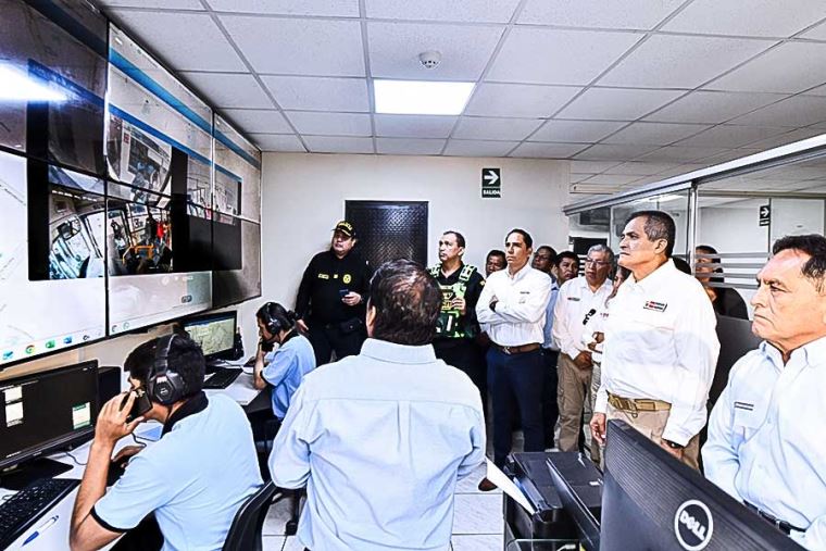 Durante el recorrido, el titular del sector Interior, acompañado del jefe de la Región Policial Lima, general PNP Jorge Castillo, verificó el funcionamiento del centro de monitoreo de la empresa, desde donde se supervisan en tiempo real las cámaras de instaladas en 22 unidades. Esta herramienta tecnológica permite fortalecer la capacidad de respuesta policial y optimizar la prevención de delitos en el servicio de transporte público.