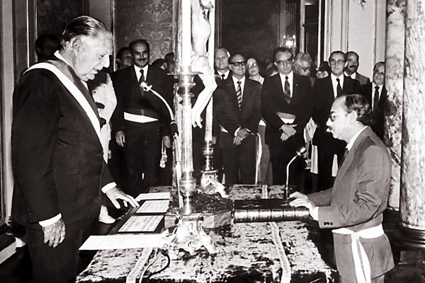 Él tenía 64 años cuando se puso la banda presidencial, entre vítores de las tribunas y el gesto apurado de la vicepresidenta del Congreso. El único espacio libre en el hemiciclo era la curul vitalicia del Miguel Grau. El Himno Nacional hizo vibrar los muros del Legislativo. Él saludó sin gestos grandilocuentes. Y con voz serena, inició su discurso:
