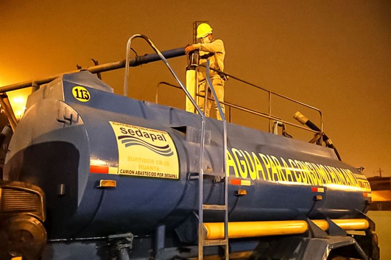 “Estamos verificando que los camiones cisterna con los que cuenta Sedapal estén cumpliendo con todos los requisitos para que pueda llegar este líquido elemento a la población afectada”, manifestó el viceministro Hernández.