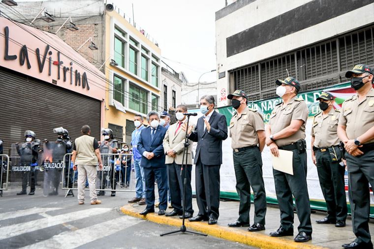 Previamente, el ministro del Interior, Avelino Guillén, anunció durante una conferencia de prensa la desarticulación de una banda criminal denominada “Los vigilantes de Ayacucho”, dedicada a la extorsión y cobro de cupos a los comerciantes informales de Mesa Redonda en el Cercado de Lima.