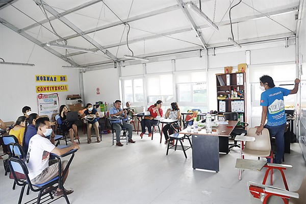 Este lunes 14, los niños han reiniciado las clases presenciales. Como sus padres no tienen dinero, deben ir a pie desde Cantagallo. Llegar al colegio les toma media hora. Esta primera semana, los 12 profesores (8 bilingües y 4 monolingües) se han enfocado en la “inducción a la salud”.