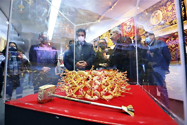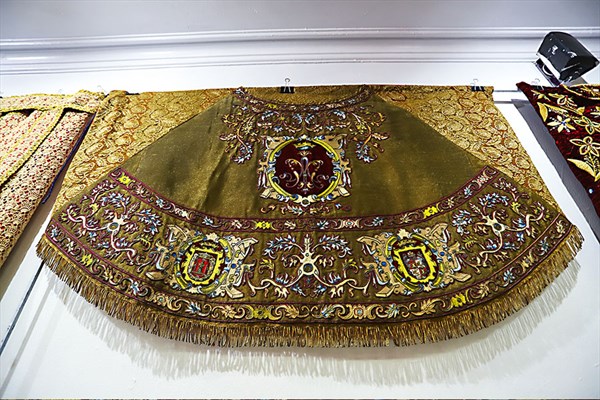 “Es del 2020, pero recién fue utilizado el año pasado para una bendición desde dentro de la catedral porque el covid-19 asolaba el mundo. Es una prenda que donó la Confraternidad y muestra en medio el escudo de la institución”, detalla.