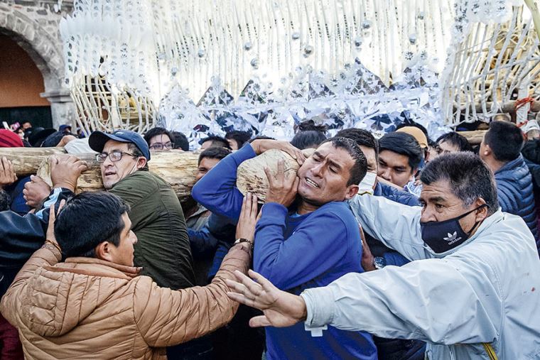 “Venimos a ganarnos el sitio”. Con el aliento de la noche de eterna parranda –la mayoría–, los cargadores se santiguan, entran a la catedral de Ayacucho, buscan su lugar en los brazos de eucalipto de la colosal anda. Se apretujan, porque son muchos los que quieren poner el hombro. Aprovecharán para darle una pestañeada y reunir energías que necesitarán de sobra.