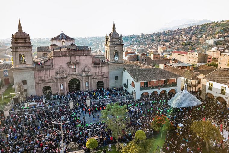 Nerviosismo y lágrimas caen de los huamanguinos, este recorrido ha demorado mucho. Hace 12 minutos que ya debió empezar la misa que ofrece desde el atrio el arzobispo. La tradición también tiene horario.