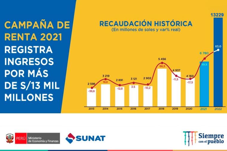 “Estos resultados reflejan la sostenida recuperación de la actividad económica en el ejercicio 2021, las acciones de facilitación y control del cumplimiento desplegadas por la Sunat y también la disposición de los contribuyentes que, en mayor número, expresaron su compromiso con el país presentando su declaración “, explicó.