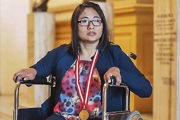 Ella tiene la mirada de la mujer con discapacidad física en las piernas. Siente que la política –que sus padres le enseñaron como sinónimo de la búsqueda del bien común–, le da una oportunidad valiosa para apoyar a las personas con su condición física.