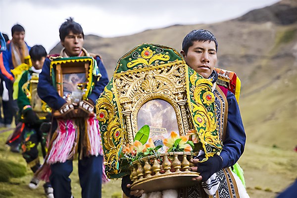 En el camino hay 14 cruces, como las estaciones de la Vía Crucis de Cristo. Al pie de cada una, hay pequeños altares, donde los peregrinos rezan y descansan. El sincretismo en la peregrinación al Señor de Qoyllurit’i deja de ser una palabra de los antropólogos y se hace realidad.