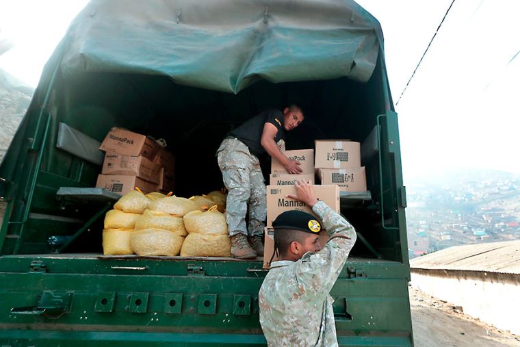 Las ollas comunes recibieron 4.5 toneladas de alimentos no perecibles, como arroz fortificado, menestras y fideos; también 51 cajas de prendas de vestir, 1000 juguetes para niños, 20 juegos de ollas, e implementos para un tópico de salud.