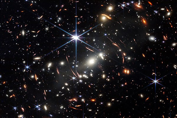 Conocido como el Primer Campo Profundo del Webb, muestra el cúmulo de galaxias SMACS 0723. Este actúa como una lente gravitacional, desviando la luz de las galaxias más lejanas que se encuentran detrás de él hacia el observatorio, en un efecto de aumento cósmico.
