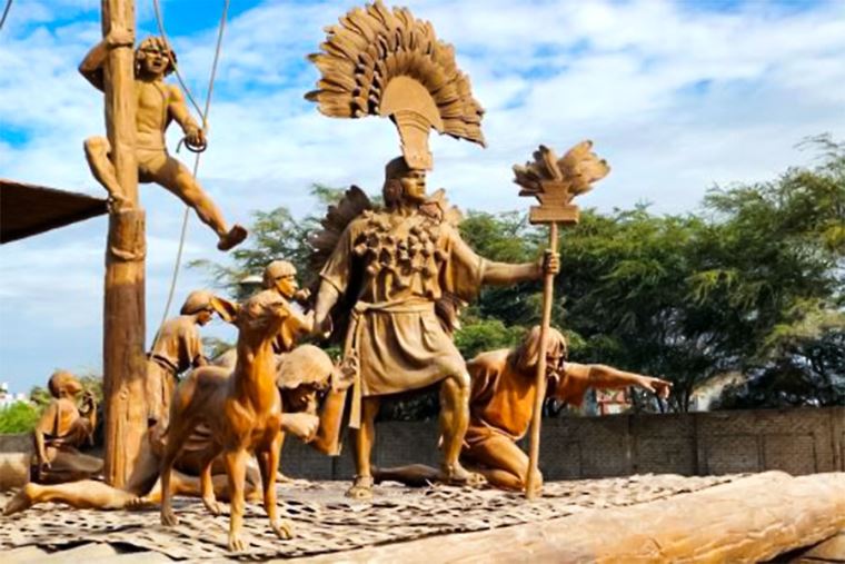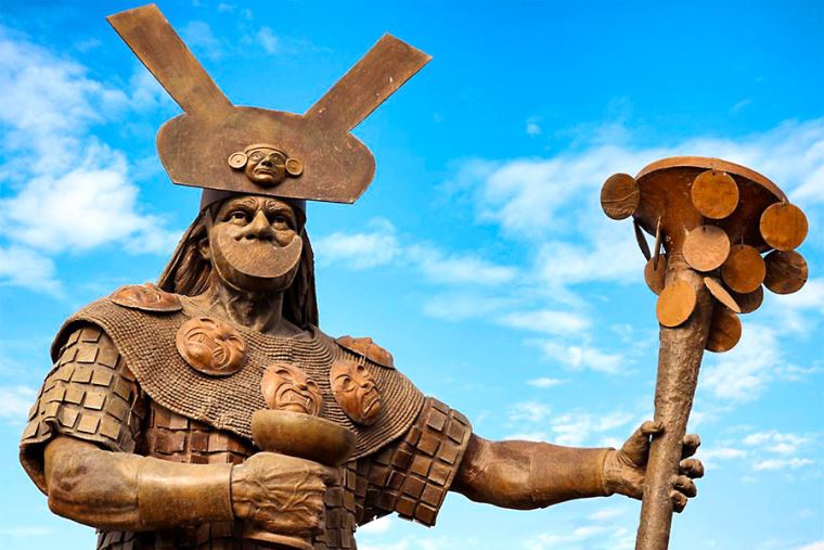 Una de las esculturas más famosas que podrás encontrar ahí es la de Naylamp, fundador legendario del Reino Sicán o Lambayeque en el siglo IX d.C. Según la historia ancestral de la región, esta figura mítica fundó un reino perteneciente a la cultura Lambayeque antes de ser conquistada por los líderes culturales Chimú. Este adopta características zoomorfas y antropomorfas, además de estar presente como una pieza ornamental en los cuello de algunos personajes.