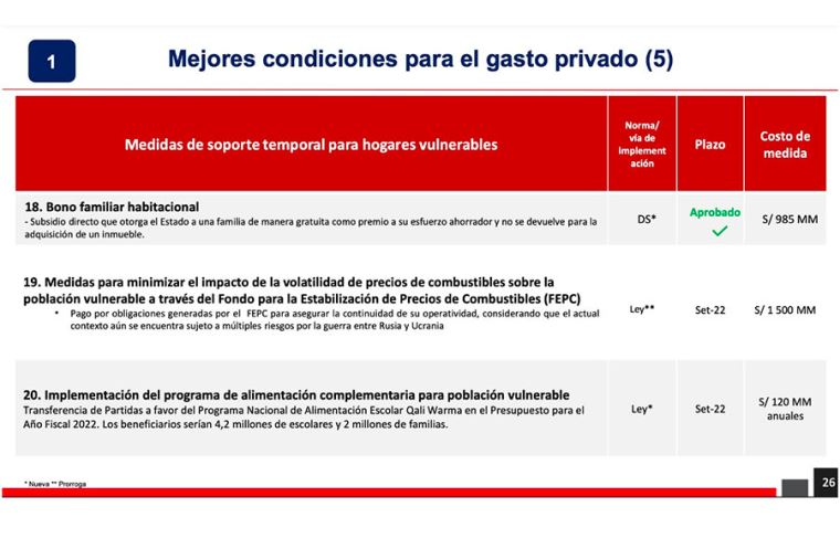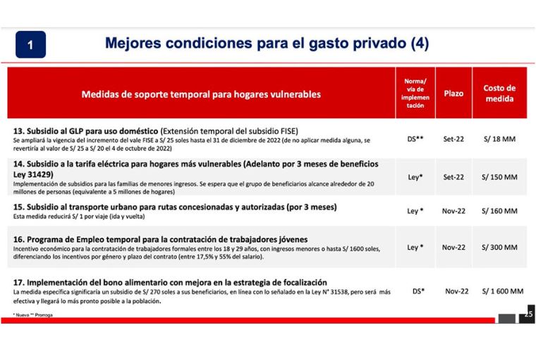 A continuación, el cuadro del MEF con los detalles y costo presupuestal de cada una de estas medidas.
