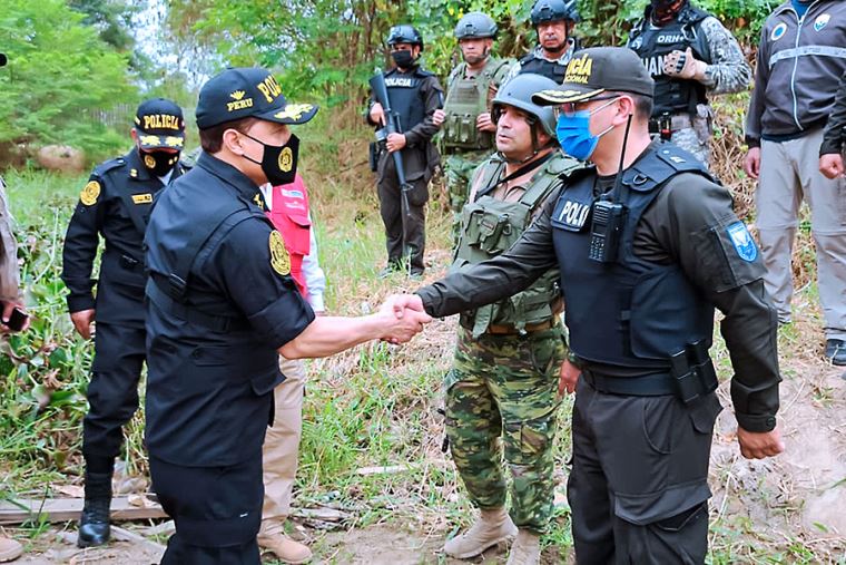 Desde el distrito de Aguas Verdes, en la provincia tumbesina de Zarumilla, el titular del Ministerio del Interior (Mininter) destacó la labor conjunta que realizan los miembros de la Policía Nacional del Perú (PNP) y de la Policía Nacional de Ecuador. Se estima que diariamente alrededor de 2000 personas cruzan la línea de frontera de forma irregular.