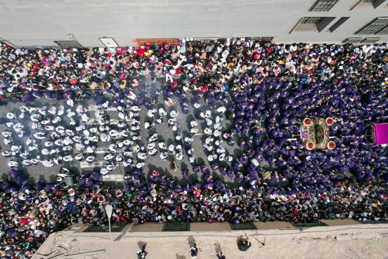 El anda la sostienen con gran devoción 36 cargadores de la Hermandad del Señor de los Milagros, que preparó este recorrido con muchos meses de anticipación.