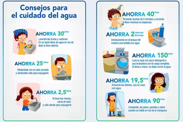 La empresa de agua y alcantarillado de Lima y Callao te brinda una serie de recomendaciones para que, en tus actividades diarias y rutinarias en el hogar, desde el cepillado de dientes al lavado de las frutas y verduras, puedas hacer un uso responsable del servicio, lo que redundará además en un menos consumo, y menor costo del recibo a fin de mes.