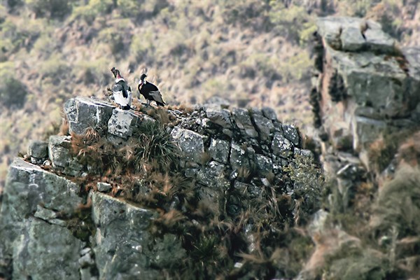 Después de casi una hora de caminata, de recorrer cuatro kilómetros, aparecen los dos miradores sobre una pequeña explanada rodeada de roquedales y pendientes, hábitat ideal para los cóndores. Esta especie necesita de fuertes corrientes de aire para desplazarse.