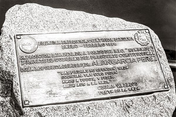 Además de sus herramientas de investigación oceanográficas y ambientales, en su primer viaje el Humboldt llevó una piedra de granito, donde estaba cincelada la frase “Primera expedición científica peruana enero-febrero 88”.