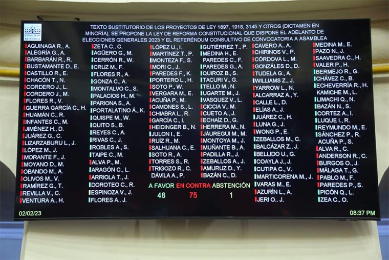 Pleno del Congreso rechaza proyecto de adelanto de elecciones para julio de 2023