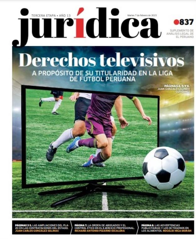 | Jurídica 837: Derechos televisivos A propósito de su titularidad en la liga de fútbol peruana | |
