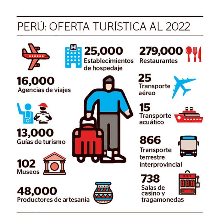 De acuerdo con las estadísticas del Ministerio de Comercio Exterior y Turismo (Mincetur), alrededor de 383,000 establecimientos comerciales y empresas forman parte de la cadena de servicios del turismo, entre hospedajes, agencias de viaje, guías de turismo, artesanos, entre otros.