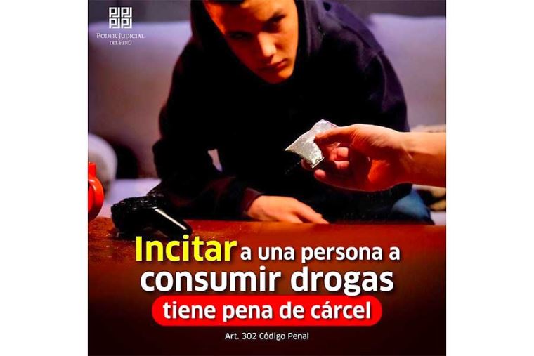 Poder Judicial: Incitar a una persona a consumir drogas se castiga con pena de cárcel