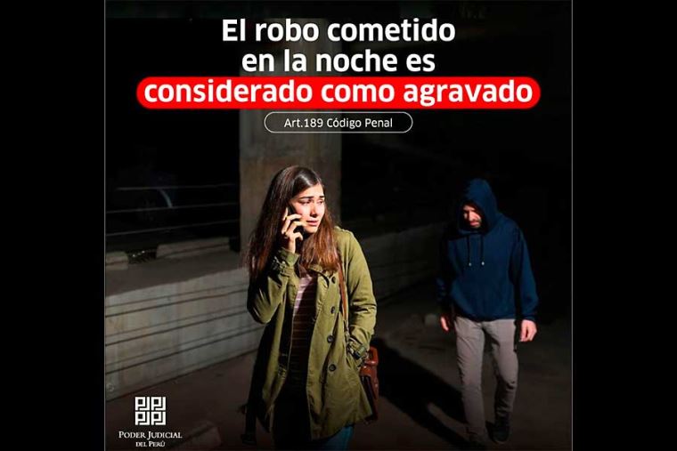 Mediante una publicación en sus redes sociales, el Poder Judicial señala que el ilícito se encuentra tipificado en el artículo 189 del Código Penal, denominado como "Robo agravado".
