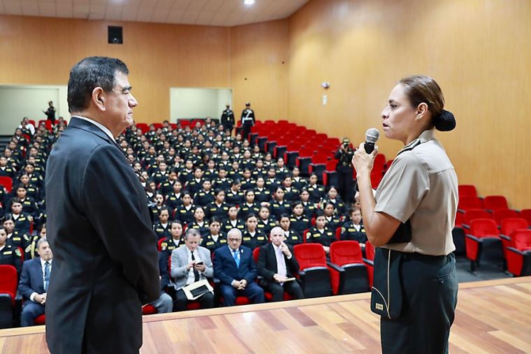 En tanto, la directora de la escuela, Asto Vargas, saludó la grata presencia del presidente del Congreso. Pidió seguir apoyando a ese centro de formación cognitiva, procedimental y afectiva de futuras mujeres policías que contribuirá a un mejor servicio al prójimo, en especial hacia las personas con vulnerabilidad, como los niños, adolescentes, la mujer y el adulto mayor.