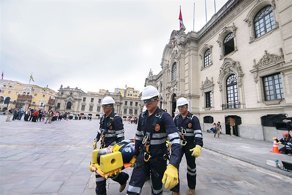 “Este tipo de ejercicios nos va a llevar a estar mejor preparados frente a un fenómeno natural que se pueda presentar y que deviene en desastre”, añadió.Durante el simulacro en la Plaza de Armas de Lima se desarrollaron ejercicios y acciones de primera respuesta, como rescate de personas en estructuras colapsadas, a cargo de la Primera Brigada Multipropósito del Ejército; rescate con cuerdas efectuado por la Policía Nacional; empleo de la Brigada Canina de la Municipalidad de Lima y traslado de heridos, entre otras demostraciones.Paralelamente, otro punto focal del simulacro fue la quebrada Quirio, en el distrito de Lurigancho-Chosica, donde la población y las instituciones de primera respuesta participaron en el ejercicio de prevención.