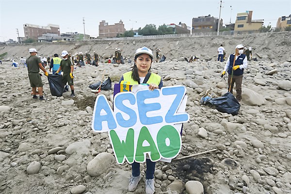 La ASEZ WAO es una iglesia particular: practica la ecología con sus acólitos. Está presente en actividades de cuidado del medio ambiente con sus voluntarios desde hace una década. Paola Carrasco es una de ellas y ha participado en una treintena de jornadas de limpieza de espacios públicos. “Participamos por amor a la Madre Celestial. Queremos generar algún cambio, sea con la limpieza de calles, la recuperación de ríos o cuando haya algún desastre así ambiental, estaremos los jóvenes trabajadores de la iglesia de Dios”.