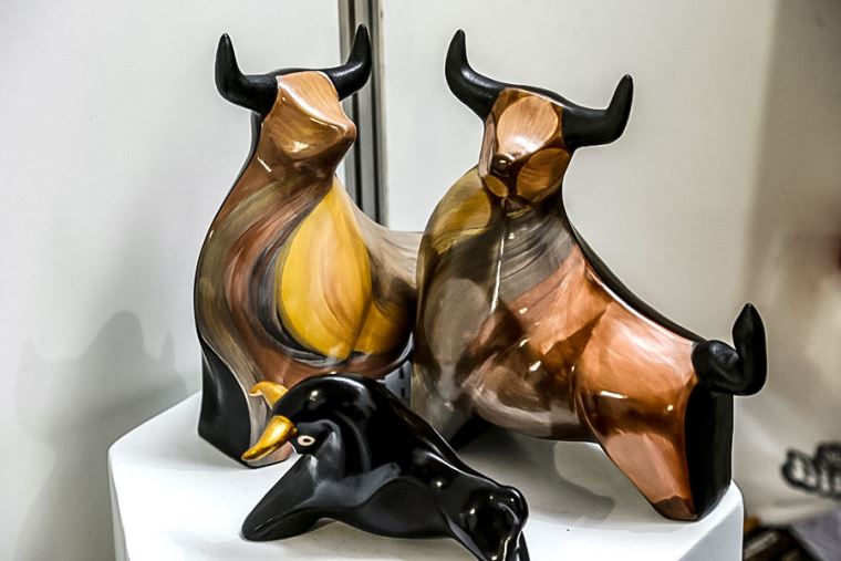 Torito de Chulucanas: Torito escultórico, hecho de arcilla, quemada a 800°c y decorado utilizando la técnica de ahumado con hojas de mango, técnica de la cultura Vicus. Este llamativo producto artesanal representa fortaleza y vigor.
