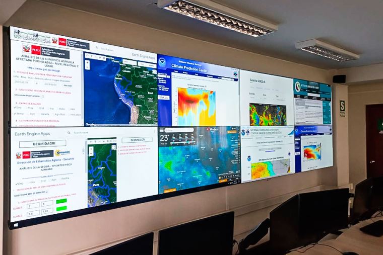 En el primer trimestre del 2023, como parte de su proceso de modernización, el Midagri implementó el Centro de Monitoreo y Control. Este centro emplea tecnología de vanguardia para brindar visualización en tiempo real de plataformas satelitales y datos relevantes según las coyunturas. Además, se adapta a diferentes necesidades, como visualizar situaciones relacionadas con desastres naturales o temas como abastecimiento y stock de productos ante situaciones como huelgas de transporte.