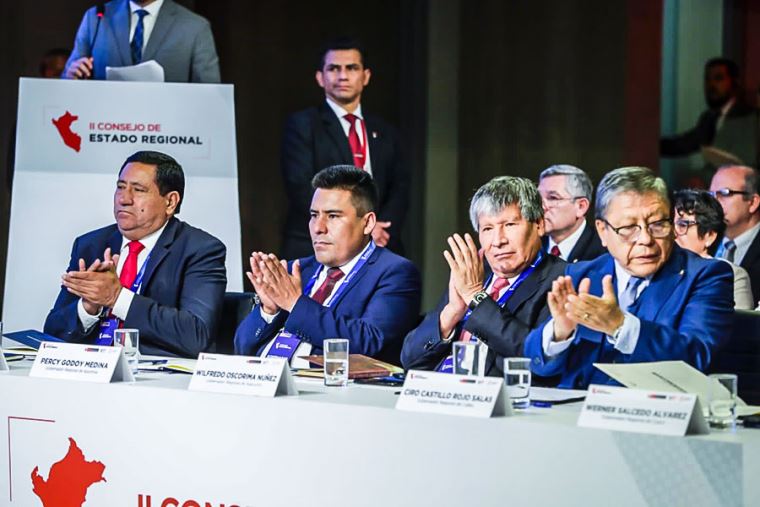 El II Consejo de Estado Regional fue encabezado, además de la Presidenta de la República, por el presidente del Consejo de Ministros, Alberto Otárola, y el presidente de la Asamblea Nacional de