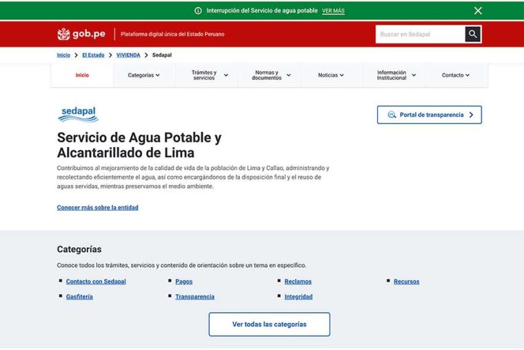 Para saber si tu vivienda será afectada por el próximo corte de agua en Lima, puedes ingresar a la página web de Sedapal, donde notarás en la parte superior un banner de color verde"Interrupción del Servicio de agua potable" que, al seleccionarlo, desplegará una ventana titulada Consultar zonas con próximos cortes de agua en Lima y Callao.