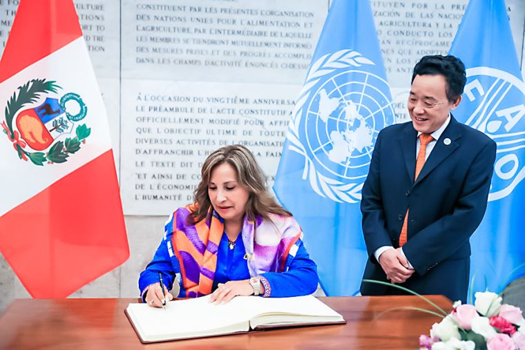 Al final de la reunión, la presidenta Boluarte firmó el Libro de Oro de la FAO.