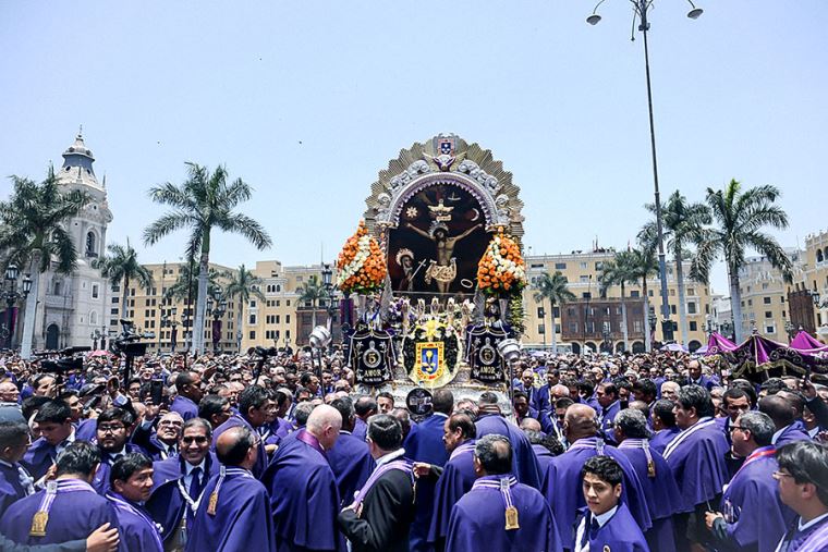 El Señor de los Milagros recorre diferentes calles y avenidas del centro de Lima este 18 de octubre.