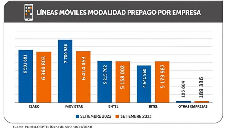 Así, las líneas móviles contrato, las cuales generan más ingresos por usuario en comparación a la de la modalidad prepago, representan ya el 43% del mercado de líneas móviles al cierre del tercer trimestre del 2023.