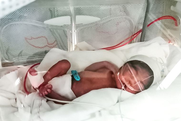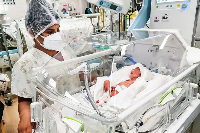 Tiago Valentino descansa tranquilo en una de las incubadoras donadas por JICA.