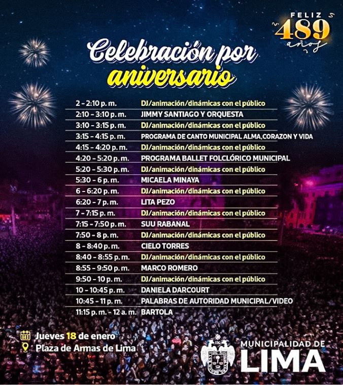 Aniversario de Lima 2024: cronograma y horarios de conciertos para el 17 y 18 de enero