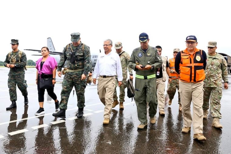 Acompañan al titular del Ministerio de Defensa, el jefe del Instituto Nacional de Defensa Civil (Indeci), Carlos Yáñez Lazo, quien supervisará la asistencia técnica en esa zona afectada por las precipitaciones; la vicegobernadora de la región Ucayali, y congresistas.