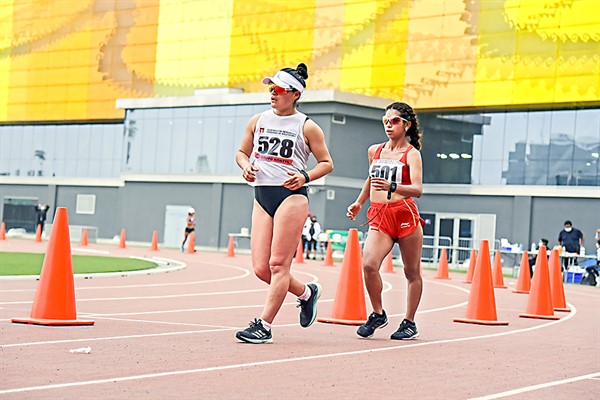 Evelyn Inga, quien se transformó en una atleta de élite y compite en escenarios internacionales, destaca el nivel óptimo de la pista del Estadio Atlético de la Sede Legado Videna, adonde llega eventualmente a entrenar, y lo compara con escenarios deportivos del primer mundo.