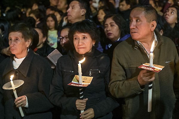 Cientos de personas vestidas de negro y portando cirios encendidos llegaron hasta la iglesia de Santo Domingo, ubicada en la segunda cuadra del jirón 9 de Diciembre, para participar del recorrido de la imagen venerada por la plaza Mayor de Huamanga.