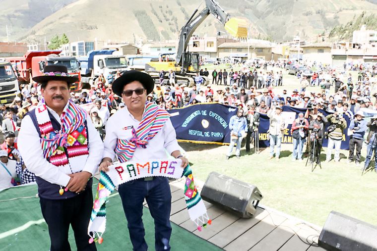 Desde esta localidad, el ministro de Salud, César Vásquez, recordó que la presidenta de la república le dio la indicación de hacer realidad el Hospital de Pampas. "Este es el sueño de muchos años de los pampinos, y gracias a su organización y el diálogo continuo de sus autoridades con el gobierno central hoy empieza a hacerse realidad”, indicó.