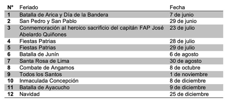 Con ello, para lo que resta del año 2024, en el Perú, quedan aún 12 feriados en beneficio del trabajador. Estos son:
