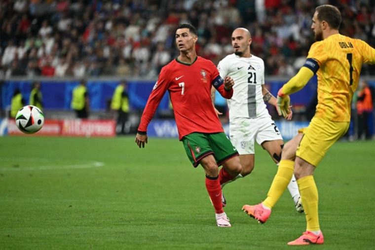 La desesperación de Ronaldo era compartida por sus compañeros, que pese a un continuo asalto se chocaban una y otra vez contra el bloque defensivo de Eslovenia, muy bien plantado y reactivo.