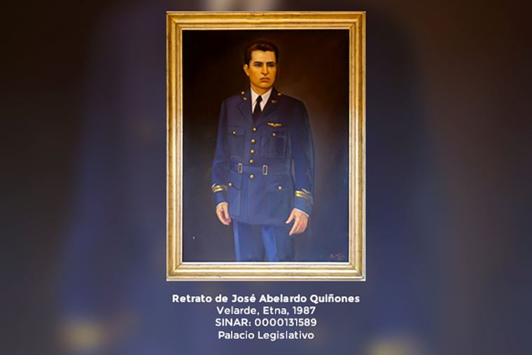 Realizada por Etna Velarde en 1987, muestra a Quiñones en tres cuartos de cuerpo, vestido con uniforme de la Fuerza Aérea peruana. Hecha en óleo sobre tela, la pintura se encuentra en el palacio legislativo en Lima (jirón Ayacucho 259-339, Cercado de Lima).