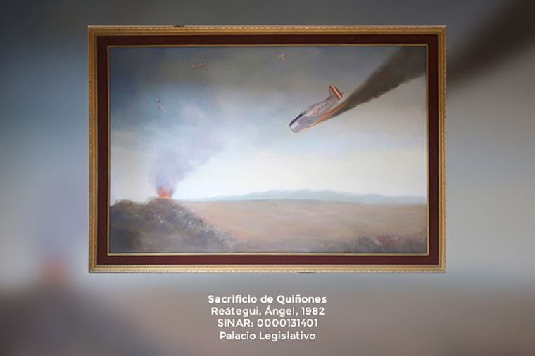 Esta obra de Ángel Reátegui captura la escena de inmolación del héroe nacional José Abelardo Quiñones, durante la Guerra con Ecuador en 1941. Se encuentra en el palacio legislativo en Lima (jirón Ayacucho 259-339, Cercado de Lima).