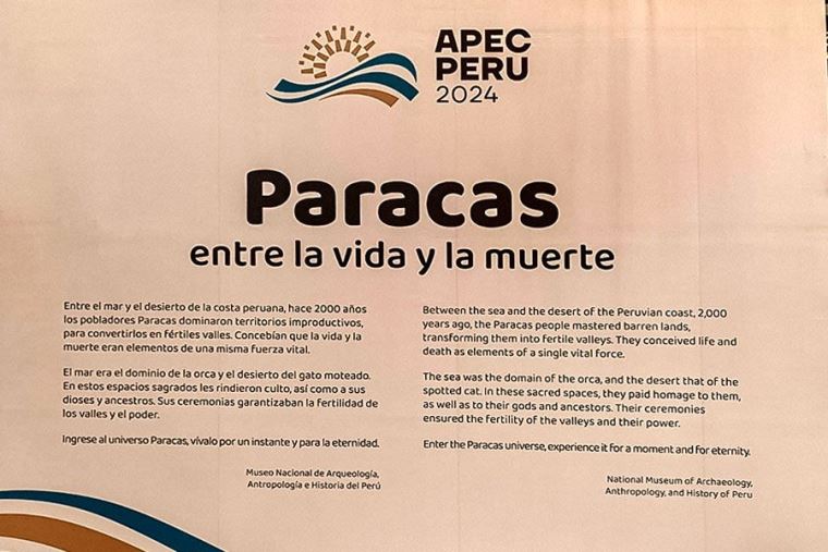 Los participantes de APEC podrán visitar la muestra Paracas. Entre la vida y Muerte hasta el 16 de noviembre. ¿Por qué se le eligió? Farfán señala que la sociedad Paracas es una de las sociedades emblemáticas del antiguo Perú.