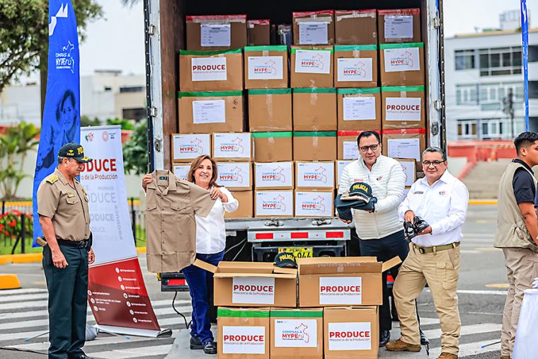 Por otro lado, la Mandataria lideró la entrega de uniformes, calzados y equipos especializados de la más alta calidad a la Policía Nacional, fabricados por micro y pequeñas empresas (mypes) peruanas.
