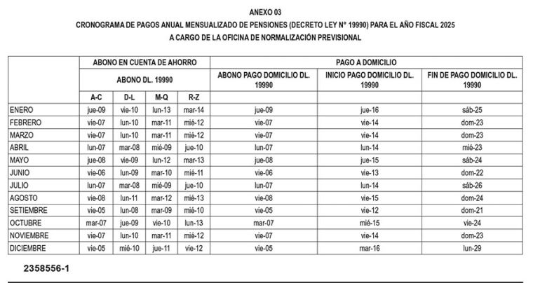 Los pensionistas del régimen 19990 recibirán sus depósitos según el siguiente cronograma, de acuerdo con la inicial de su apellido:
